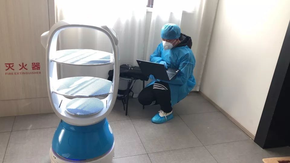 在很多抗疫一线医院内,送餐机器人成了“新员工”。