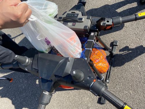 执行无人机飞行任务的是这个月刚成立的无人机志愿者团队“上海疆军战队”,这台大疆农业植保无人机T20本来担负的农业喷洒药物的任务,经过大疆技术人员和志愿者的共同改造,完美变身,成为了一台可以运送物资的运输无人机,配合喊话和监控两台无人机,一起组团完成了任务。