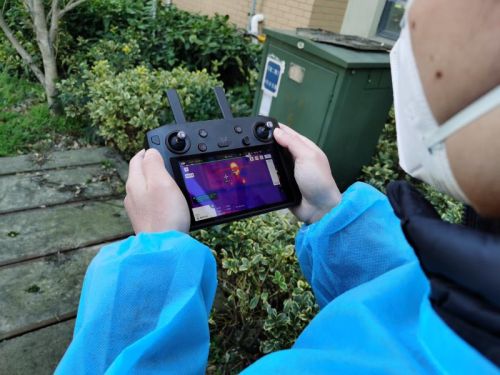据工人员介绍,此次无人机红外热成像测温是大疆根据抗疫需求紧急研发出来的新功能,可以远距离不接触测量隔离在高层的人员,目前测量体温误差在0.5度以内,这样的高空测温属于国内、国际首创。