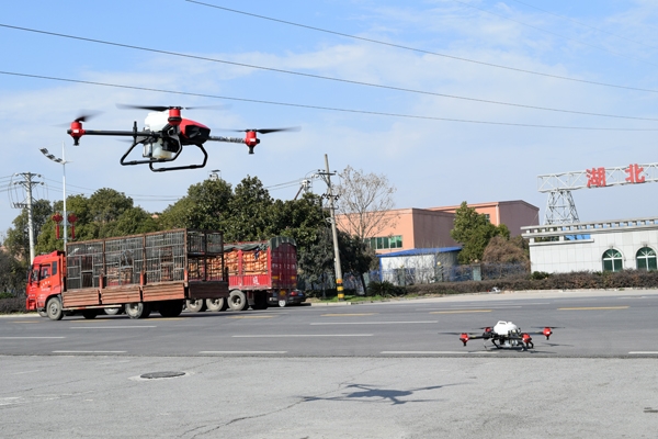 “请大家躲进室内,暂时避让消毒。”当天上午,伴随着嗡嗡的轰鸣声,两架携带有消毒液的无人机在襄大集团门前空旷地缓缓升空,接着从空中喷洒消毒液开展防疫消毒作业。