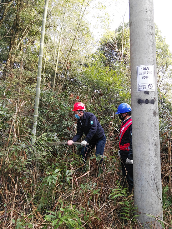在当天特巡过程中,潘伟强熟练的操作着无人机,对10千伏坑源支线开展巡视工作。“山区地段能见度低,利用传统的望远镜巡视方式无法短时间内准确判断线路覆冰情况。”潘伟强说,利用无人机可以实时、近距离观察架空线路的运行情况,能够在短时间内完成巡视任务,有效提高巡视效率。随后,吴伟艇和潘伟强还对覆冰线路走廊进行清障,重点修剪、砍伐生长快的毛竹以及细杆阔叶等易倒伏树种,确保线路通道的安全。