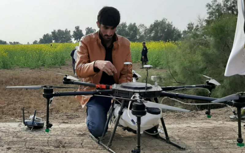 2月16日,在巴基斯坦德拉伊斯梅尔汗(dera IsmailKhan)地区,当地民众启用赛为智能多旋翼植保无人机,用于当地蝗虫灾害的防治工作。
