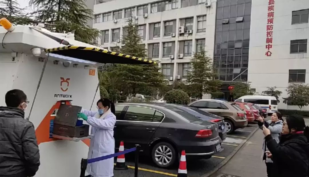 2 月 6 日,迅蚁通过「无人机+无人站」的方式,搭建了全国首个抗疫「城市空中运输通道」。从新昌县人民医院到县疾控中心之间的医疗物资配送由迅蚁提供的空中配送系统完成,医院人员只需要将物资放入无人站,同时在手机上下单,系统会自动完成「无接触」配送。