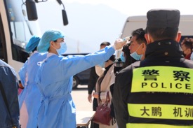 由于疫情爆发时正值春节假期,许多年前值班的警力不得不放弃年后休息时间继续坚守岗位,由于警力有限,大鹏公安不得不从机关各单位抽调警力轮流支援坝光检查点,连续加班加点成为了民警们工作的常态。坝光检查点每日保持129名警力上岗执勤,采用“1+1+5”值班体系,每天由1名处级干部带队负责指挥、督导,1名科级领导驻点值班,公安、交警、交通、卫健4部门和1支综合保障力量共43人上岗执勤。各部门严格按照“逢车必查、逢人必检”的要求,明确分工,密切配合,交通负责体温检测、设置交通标识,公安负责信息核验登记及现场秩序维护,交警负责车辆拦停及交通疏导,卫健部门对异常人员进行二次检测。在临时党支部的带领和各单位密切配合下,检疫点工作平安顺畅,至今没有输入一例确诊和疑似病例。