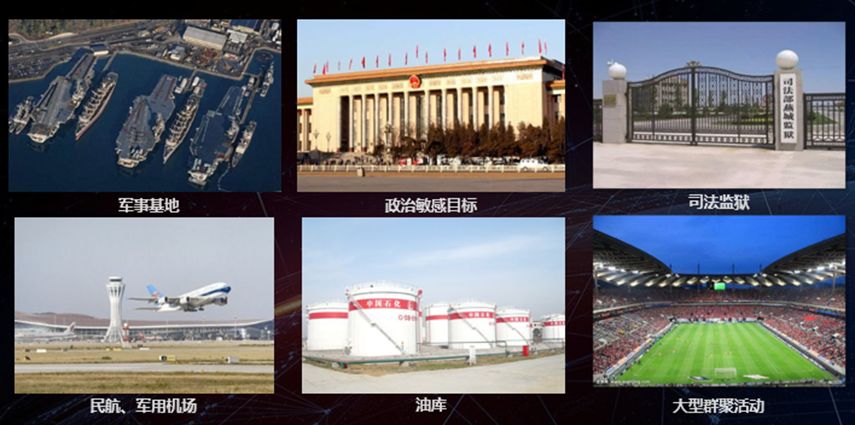 速度低空探测立体安防系统可运用在军事基地、政治敏感目标、司法监狱、机场、油库、核电站、大型群聚活动等场所。该系统已在杭州和呼和浩特某监狱、大连某电站、南京国际马拉松等多个重要场合进行了实际应用,并参与“无形截击-2019”反无人机对抗挑战赛。系统的优越指标和稳定性能均得到了相关单位的一致好评。