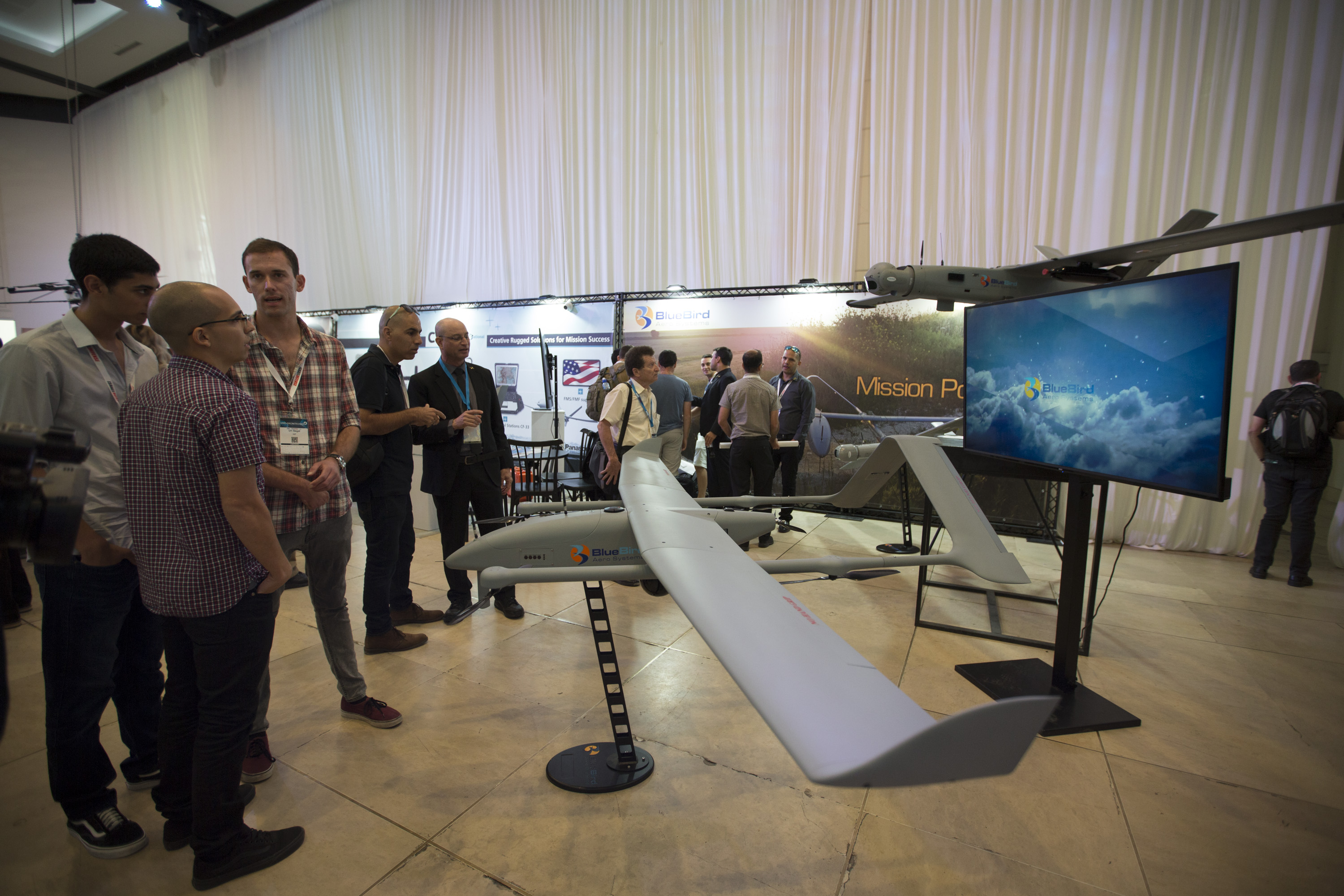 ▲11月7日,在以色列本·古里安国际机场附近的一个会展中心,人们在第八届国际无人系统展览上参观交流。新华社发