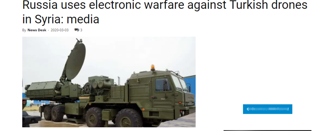 【大军事消息】上周末以来,叙利亚伊德利卜地区的战事,土耳其的察打一体无人机发挥了重大作用,一度在中低空疯狂肆虐,新式装备的跨代差距之下,叙军重装备和人员损失惨重,凸显了新式装备的巨大功效,但俄军从本土紧急驰援大批装备之后,小编套用抗冠状病毒“神药”双黄连口服液那个相关词----对土军无人机起到明显的“抑制作用”;尤其是俄军新式电子战系统的投入,简直是“疗效显著”。