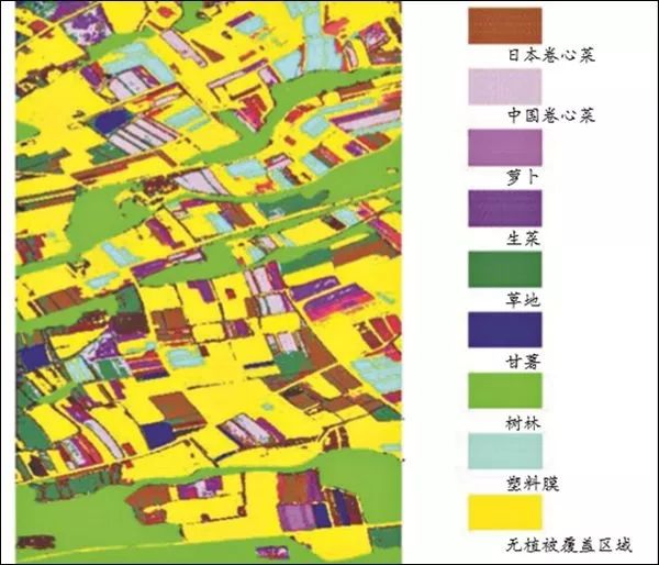 由无人机搭载高光谱遥感成像可以快速识别大型灌区内种类繁多的各种农作物,结合灌区的正射测图可以方便的计算出各种农作物的栽种分布和栽种面积,可以方便的进行针对性灌溉供水调配。