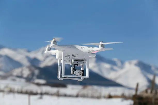 2016年12月23日,新疆哈密市,受强降雪的影响,东天山处处风景美如画,吸引无人机爱好者前来航拍美景。