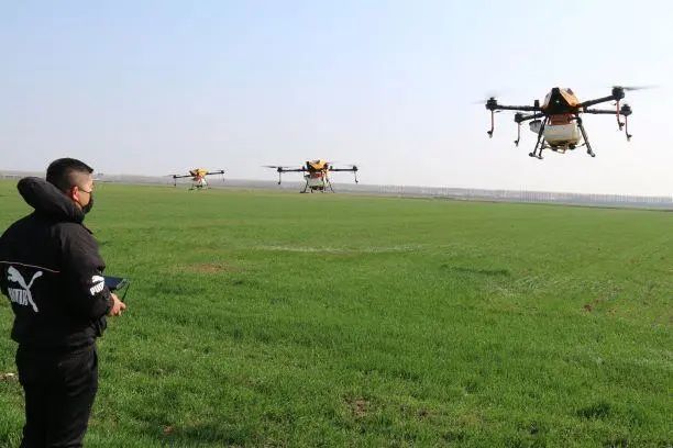江苏省连云港市灌云县南岗镇,植保无人机在麦田里进行喷药作业。2月25日以来,江苏省连云港市灌云县农业农村局每天组织30多台植保无人机对小麦进行施肥、喷药等作业,日作业面积达3万多亩,大大提高了管护效率。灌云县今年种植小麦82万亩,眼下已进入春耕春管关键期,为使春耕等各项农事生产有条不紊地推进,该县在抓好新冠肺炎疫情防控的同时,及时组织农业生产,保障春耕、春管、春播需求,确保全年经济发展。