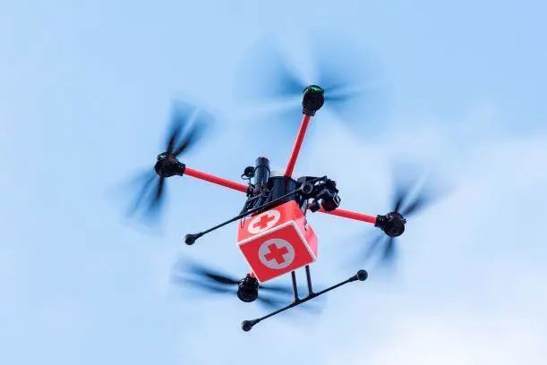 当地时间2020年2月5日,德国汉堡,Globe UAV 推出的一款无人机在 Bundeswehr 医院进行测试飞行,将成为快速运输医疗物资的样本。