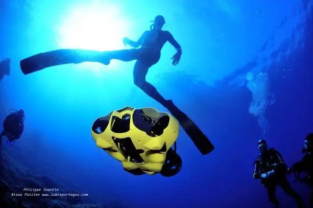 2017年11月16日报道(具体拍摄时间不详),世界首款水下无线跟拍无人机即将开售。这款由潜水员和技术人员组成的团队开发了首款可自动追踪拍摄的水下?#28508;艇搭载GoPro进行拍摄,只需佩戴手表型遥控器,即可实现跟拍,并提供了多种移动和拍摄模式可供选择。潜水深度为60米,遥控范围25米,电池续航1小时。售价1499美元,折合人民币9900元。