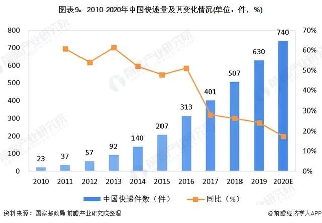 根据国家邮政局公布的相关数据显示:“十三五”以来,我国快递包裹量年均新增速度达100亿件,连续6年超过美国、日本、欧洲等发达经济体。目前我国单日快递量超亿件,2019年我国快递年业务量突破600亿件,预计2020年将达到740亿件。不断增长的业务量使得传统的投递方式越来越难以满足日益增长的服务需求。