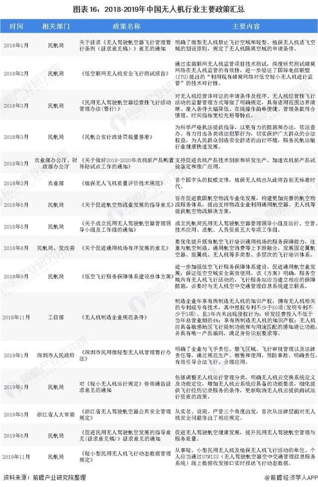 多年来,我国出台了多项无人机相关政策及规划为工业无人机的发展提供巨大的推动力。特别是近两年,政策对于低空空域的开放持正面态度,无人机相关政策正在加速制定和实施,前瞻产业研究院认为,政策的完善将规范这一快速发展的市场,有望助推行业发展提速。