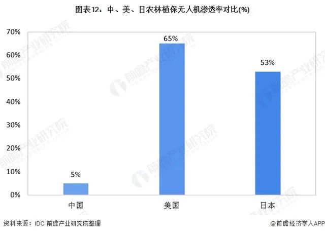 然而,目前我国农林植保无人机的渗透率不足5%,而美国、日本等发达国家的渗透率以及超过50%。目前我国有18亿亩的耕地,随着我国社会主义新农村的建设的推进,智慧农业加速普及,我国有望实现美国、日本农业的规模化、专业化经营。日本植保无人机已经使用20多年,目前每年更新量约为3000架。中国如果达到日本目前植保无人机的普及率和使用频次,仅年更新量就能达到30000架。根据IDC发布的预测数据显示,到2023年,中国农林植保硬件销售规模为160亿元,而农林植保服务市场规模将达到485亿元。在农林植保方面,我国工业无人机未来的需求量更是不可想象。前瞻产业研究院认为,此次疫情中无人机在农林植保方面的优越性得到体现,预计未来将加快农林保值领域无人机的普及。