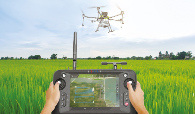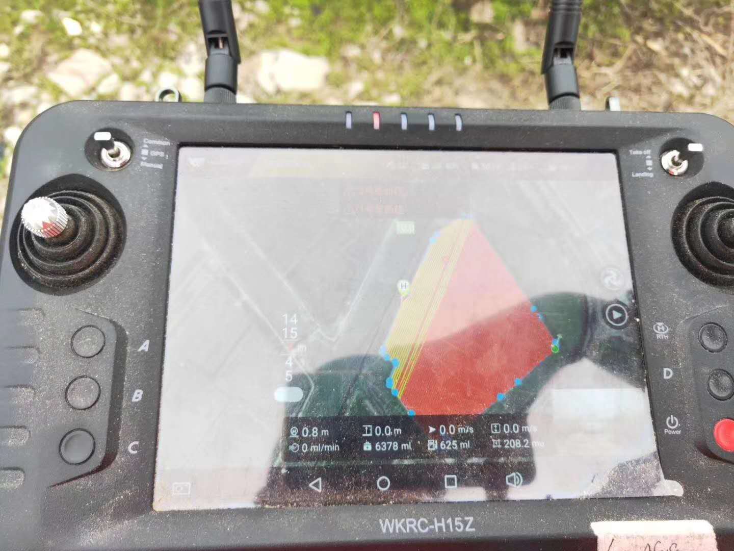 AG-18油电混合植保机虽然是一款加注汽油的产品,但是其智能操作与普通的电动无人机一般,通过公司自主研发的大屏遥控器可以完成航线规划、轨迹修改、面积计算等一系列功能,同时具备摇杆和按钮满足飞手在小面积田块或者漏喷的情况下进行手控飞行。