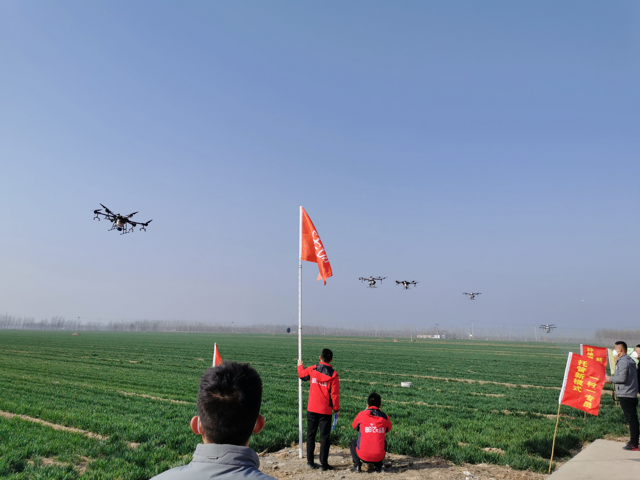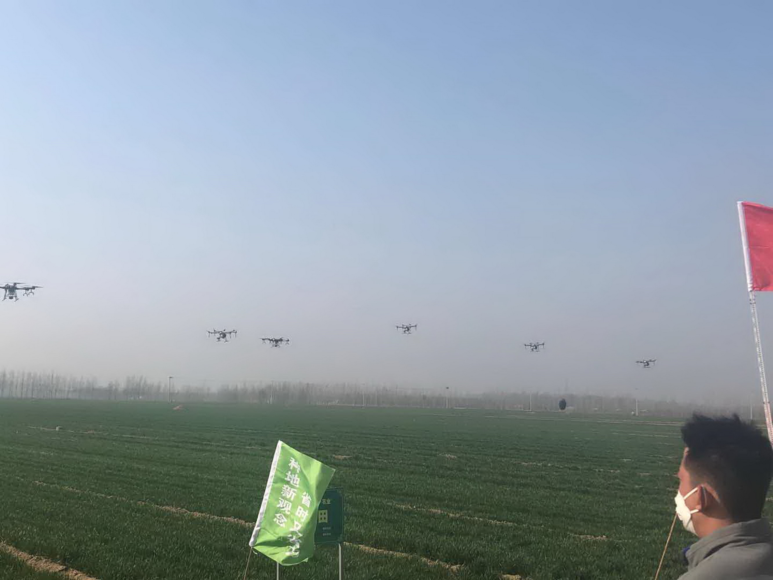 3月11日上午,山东聊城邮政在冠县定远寨镇举行“战疫情保春耕 邮农场在行动”暨植保无人机飞防启动仪式。现场,11架无人机同时升空,展示了高效的飞防作业。
