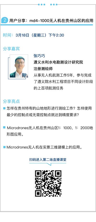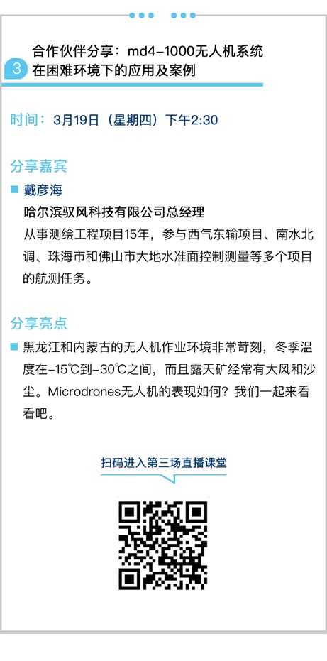 3月初Microdrones面向国内用户首次推出免费课程,吸引了众多业内人士观看,更有不少幸运的小伙伴成为Microdrones粉丝,收获了精美的答谢礼物。根据第一季课堂观众的反馈,我们认真挑选了第二季课程的选题,把重点放在Microdrones的新款产品重型md4-3000无人机的解读以及无人机应用案例的分享上。
