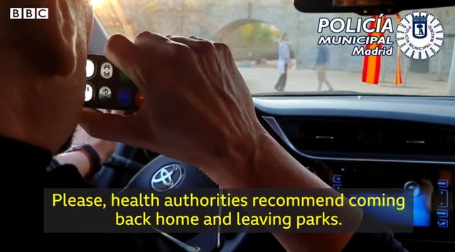 【环球网报道】“请离开公园”、“回家”、“请待在家里”......在西班牙首相14日宣布即日起在全国范围内实施为期15天的严格封闭措施后,该国警察也用上了无人机巡逻喊话,要求民众待在家里不要出门。