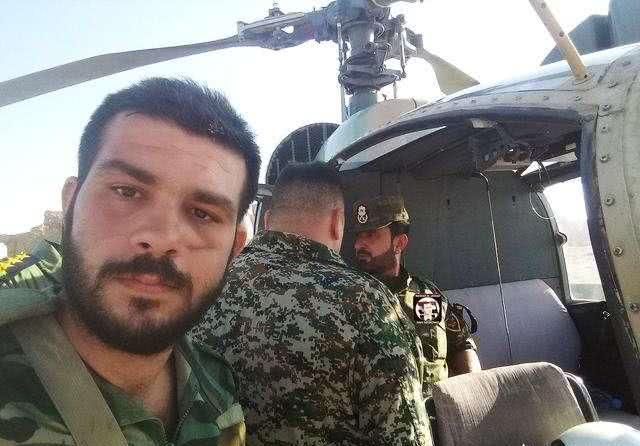 “老虎师”第25特种师指挥官苏海尔·哈桑少将在直升机上和属下交谈