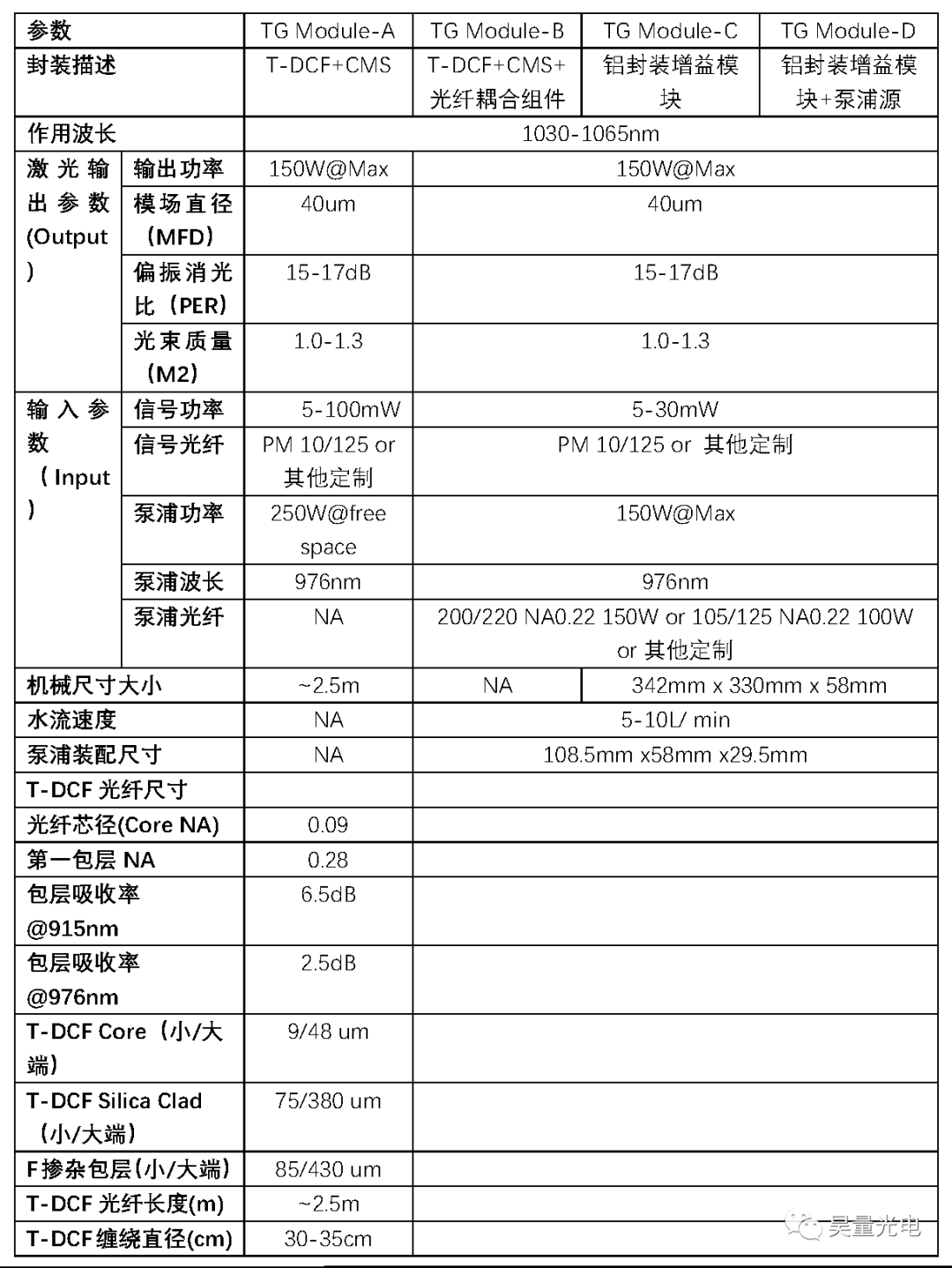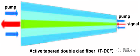 - 核心技术:锥形双包层掺镱光纤(T-DCF);