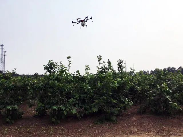 3月24日,在湛江市逐溪县北坡镇果桑基地,天鹰兄弟利用植保无人机对250亩桑果树开展病虫害防治。