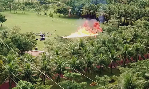 清明节临近,山火、高压线飘挂物等因素严重威胁到电网的稳定运行。传统处理的方式需要对线路进行停电,并通过绝缘棒清理或者高空作业车进行清障,不但费时费力,同时还容易有人身危险,采用喷火无人机后,不但很好的提升线路维护速度,而且大大降低了人身安全事故的风险。
