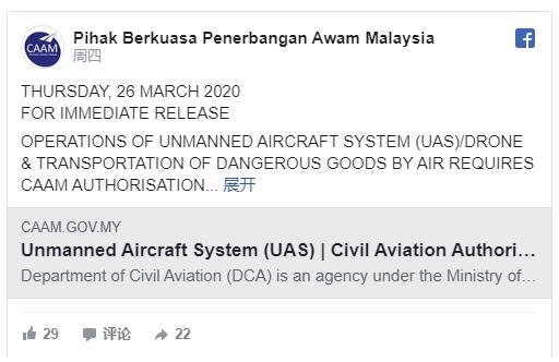 马来西亚民航局(CAAM)希望提醒所有 UAS 和无人机操作员在受疫情期间操作他们的飞行器时更需要遵守规则和规定;条例是指 2016 年《马来西亚民航条例》(MCAR 2016)下的条例 140-144。
