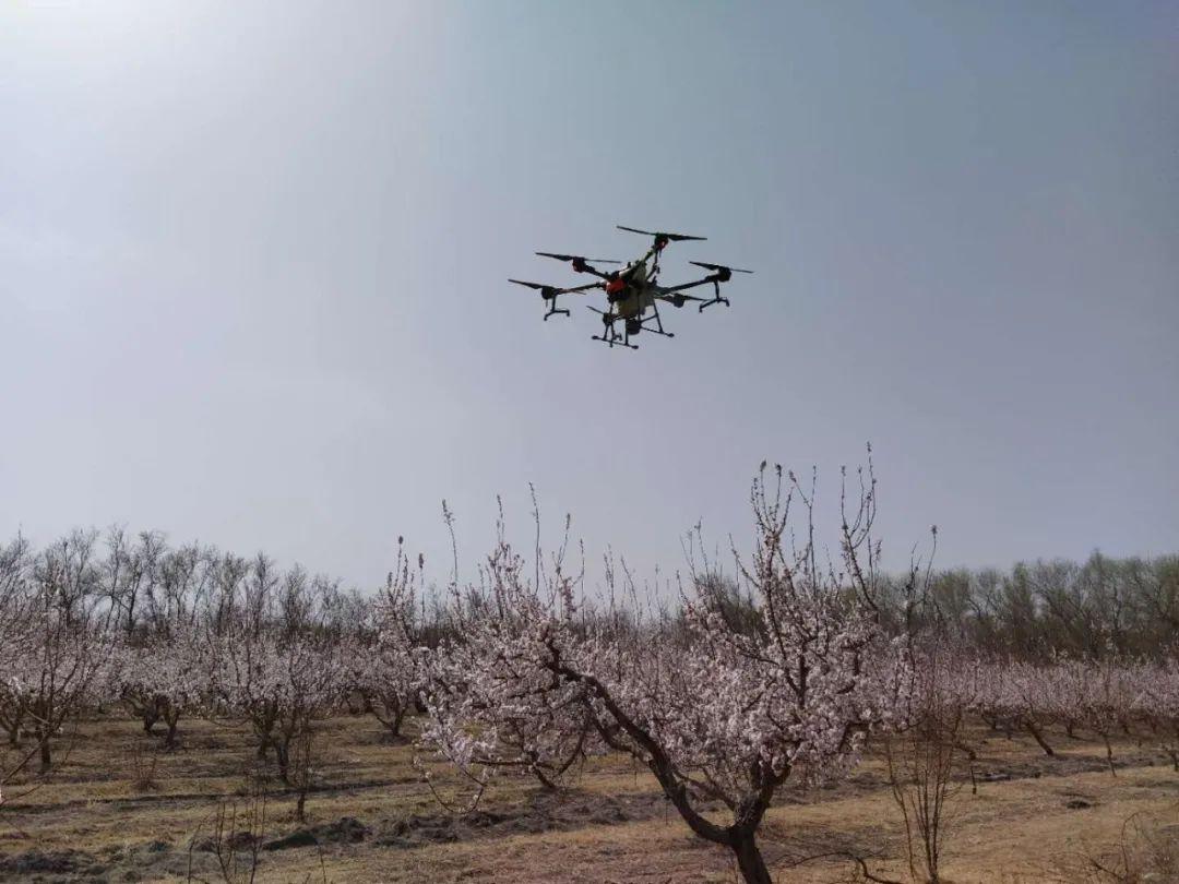 据了解,无人机授粉就是将花粉溶解在特制溶液里,搅拌均匀后,再通过无人机从上空往下喷洒。相比传统的人工授粉,无人机授粉效率高、成本低。而杏树要在最佳授粉期内完成授粉工作才不会影响坐果率。