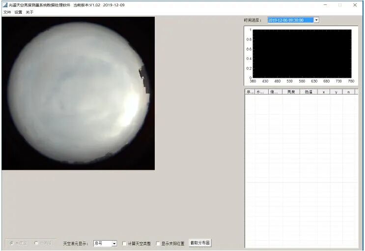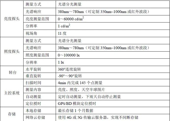 4.根据预设参数自动按时完成天空半球各测量单元的亮度测量存储;