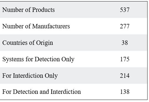 为了更好地把握反无人机市场的规模和结构,第二版《反无人机系统》建立了一个公开的反无人机系统数据库。该数据库由来自38个不同国家的277家公司和合作伙伴销售的537种产品组成。这个数据库是通过对新闻、营销材料以及其他公开信息建立的。它包括少量仍在积极开发中的系统,以及为其他目的设计的现有产品,这些产品已经过改装或专门为C-UAS销售。