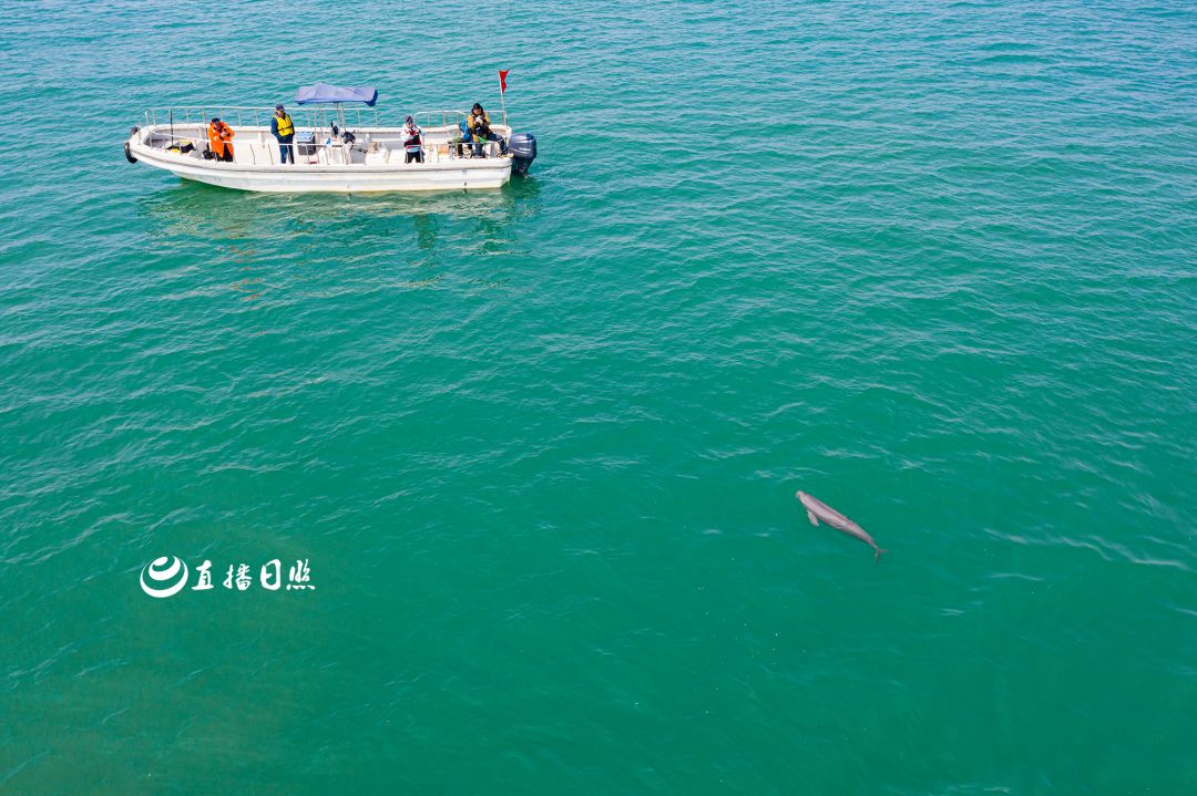 据刘晓彬介绍,他当时和几个海钓爱好者在日照顺风阳光海洋牧场钓鱼时,与江豚发生“邂逅”。