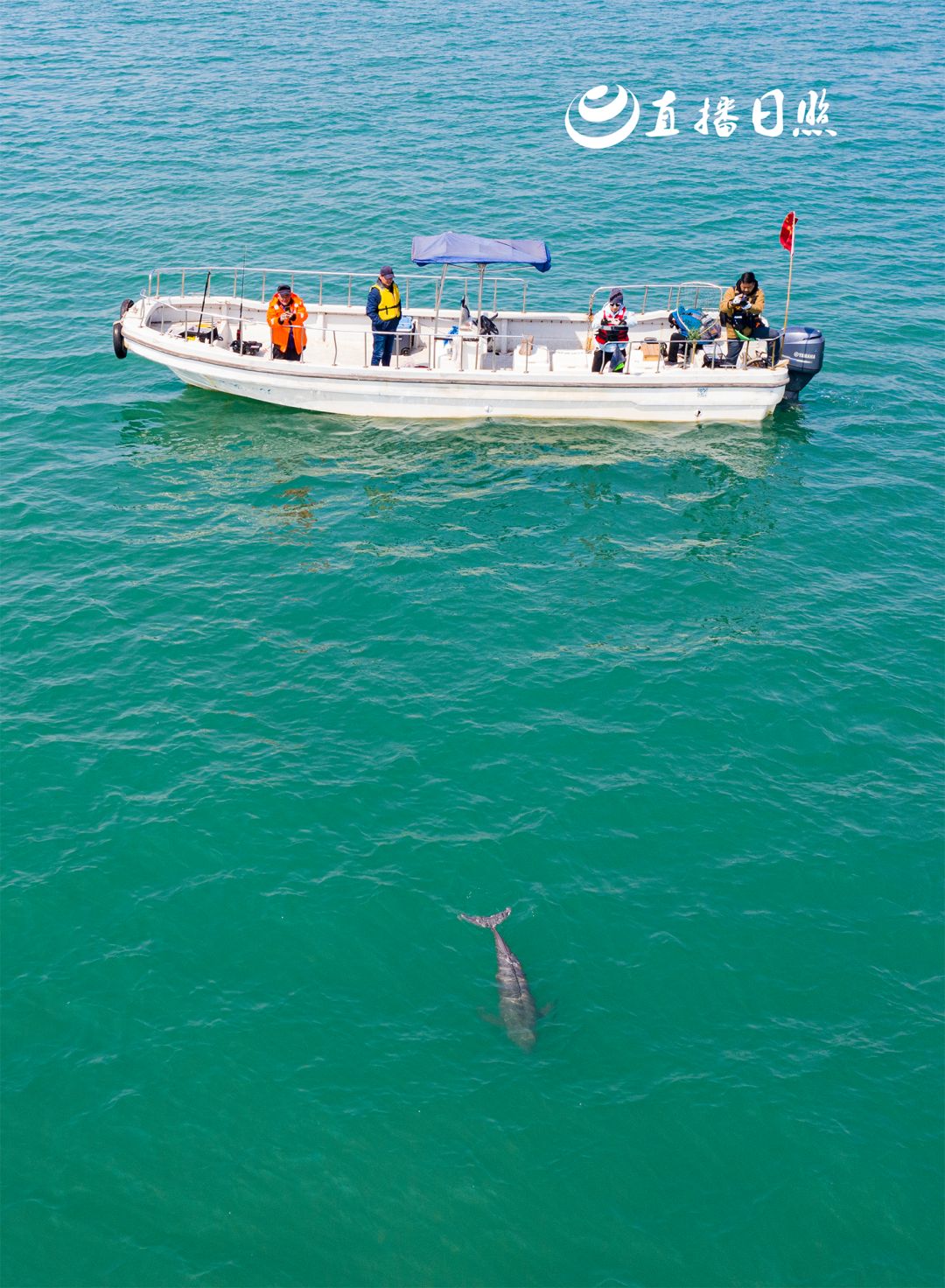 3月30日下午,影视工作者刘晓彬等人在日照岚山海域,用无人机等摄影设备拍摄到两只江豚在海面上“逐浪戏水”。