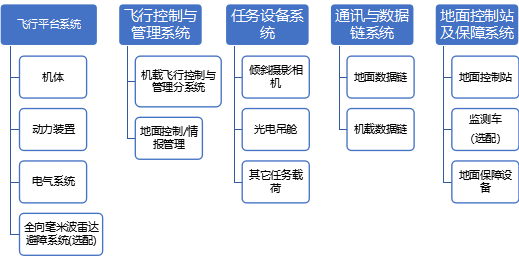 飞机平台是无人机飞行的主体平台,主要提供飞行能力和装载的功能。由机体结构、动力装置、电气设备等组成。
