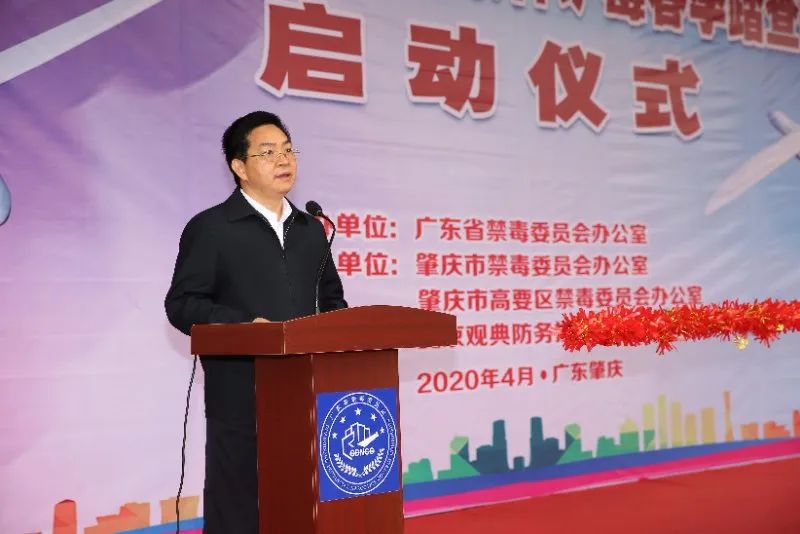 启动仪式由省公安厅禁毒局预防教育处副处长杨剑钊主持。省禁毒办副主任、省公安厅禁毒局副局长黄秋文,肇庆市副市长、市禁毒委副主任、市公安局局长董信奇,肇庆市高要区区委副书记、区长、区禁毒委主任江栋才,韶关、河源、梅州、茂名、肇庆、清远、云浮等7个地市禁毒办、市公安局禁毒支队相关负责同志,肇庆市各县(市、区)禁毒办主要领导,高要区各镇街党政领导、政法干部代表参加了活动。