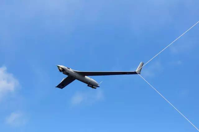 “扫描鹰”钩住了一根悬在约16米高的杆子上的阻拦绳索,利用“天钩”系统,“扫描鹰”无人机能部署到前线、车辆、小型舰船上。