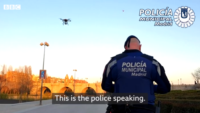然而,突尼斯不是唯一动用机器人实施封锁政策的国家。报道介绍,尤其是在欧洲,当局动用无人机对公众发出严厉警告。意大利西西里岛墨西拿市市长卡泰诺·德卢卡录下了自己高喊的“你们他妈的去哪儿?回家去!”的话,向行人广播。西班牙首都马德里也采取了类似措施。在西班牙首相14日宣布即日起在全国范围内实施为期15天的严格封闭措施后,该国警察也用上了无人机巡逻喊话,要求民众待在家里不要出门。警方采用无人机在马德里塞戈维亚大桥和太阳门地区等进行街道巡逻。