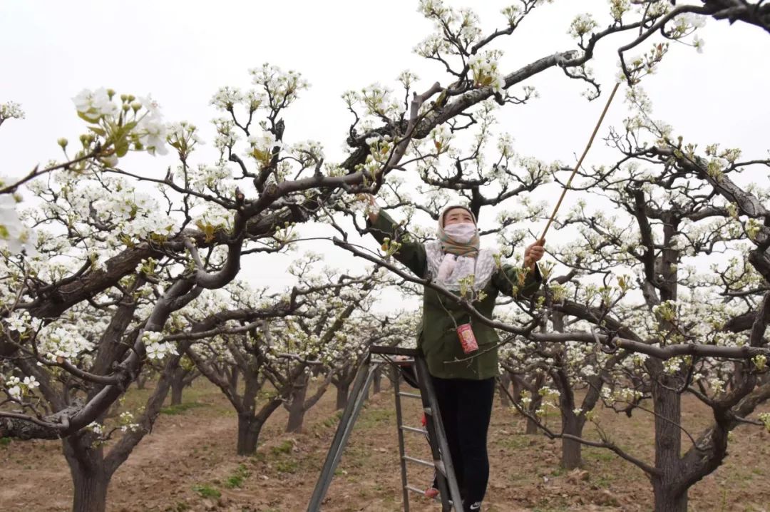 人工为梨花授粉