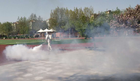 地面消毒使用消毒炮进行喷雾式消毒,消毒人员对地面死角地区,边缘地区着重消杀。