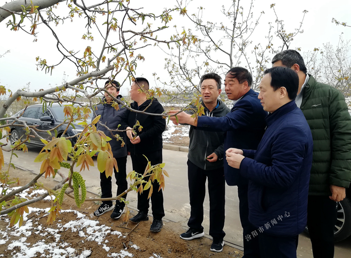 4月10日,我市受雨雪天气影响,气温骤降,为了尽量减少低温雨雪天气对果树的影响,让果农的损失降到最低,市委副书记李正奎与市林业局、省农科院果树所、山西农业大学组成专家组一同深入栗家庄乡田间地头,详细查看果园中的果树受低温影响情况,并与专家组们一同认真研究预防和补救措施。经专家组研究决定,立即为果树喷洒可以增强植物细胞活力、热量,提高植物抗病、抗低温、抗冻能力的防冻液。