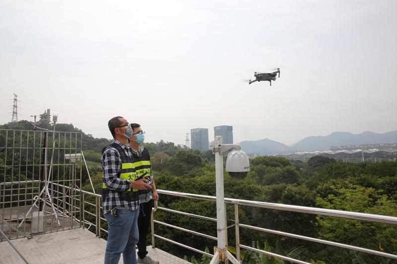 4月14日上午,中山市生态环境局在紫马岭公园空气自动监测站开展无人机大气巡查。围绕大气敏感区域的进行筛查,摸查区域内污染源分布点位。10:20左右,在工作人员的操作下,一台搭载着环境监遥感技术的无人机飞向天空,开始了它的环境巡查工作。此次飞行时长约90分钟,中间将更换3次电池。