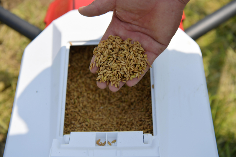 4月16日,在江西省南昌市新建区石埠镇乌城村,当地农户将早稻种子倒入无人机的设备中,准备利用无人机进行播种。