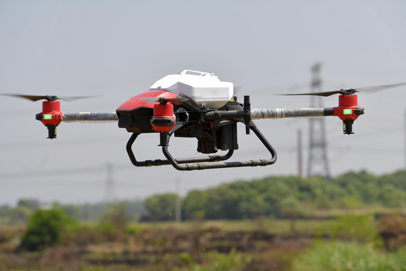 4月16日,在江西省南昌市新建区石埠镇乌城村,无人机在播种。
