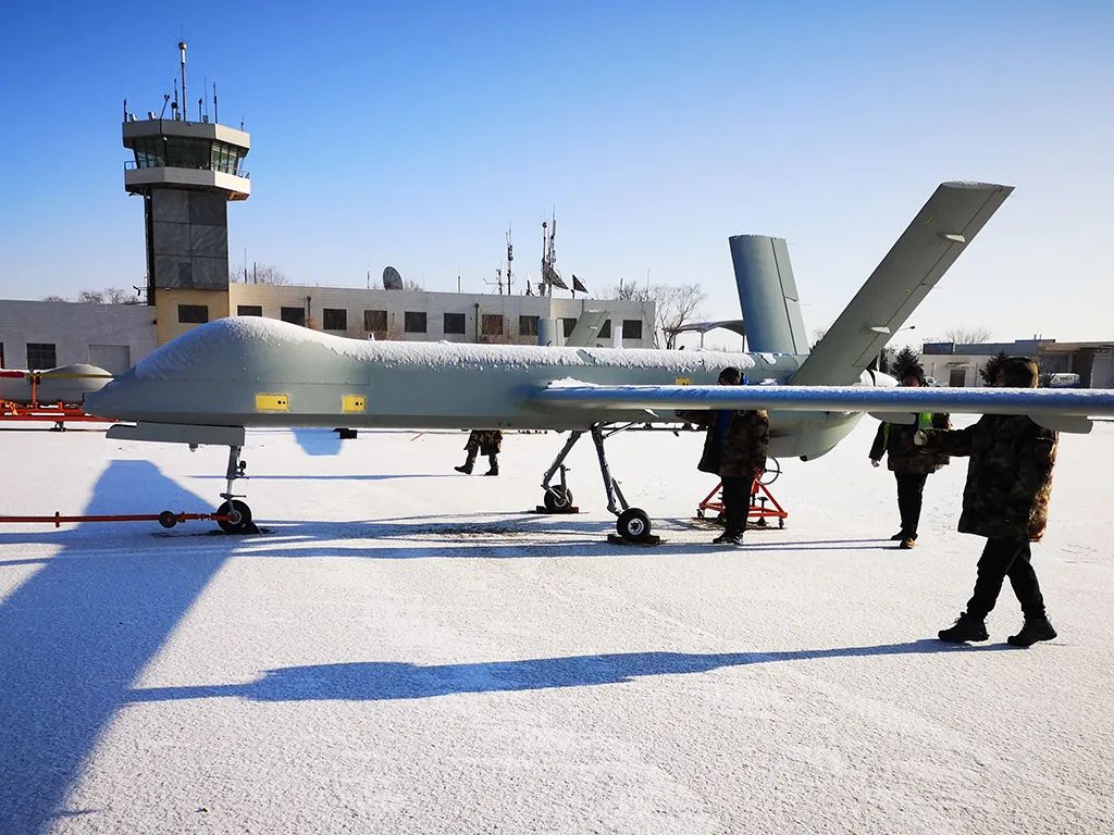 ▲寒冷的试飞场,大家协力将飞机拉上跑道