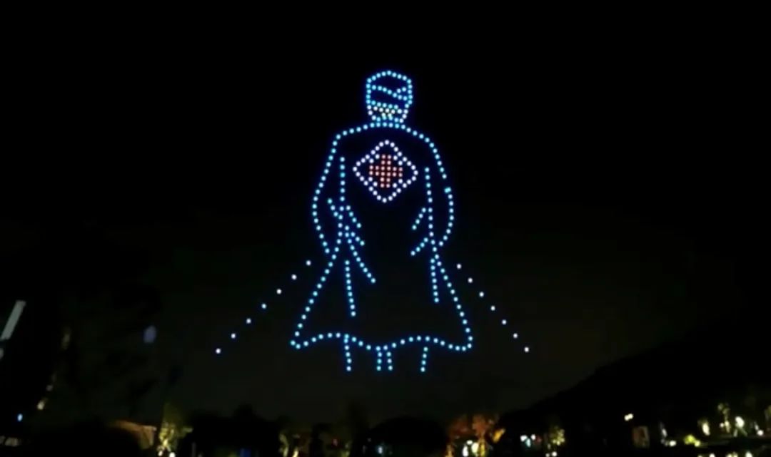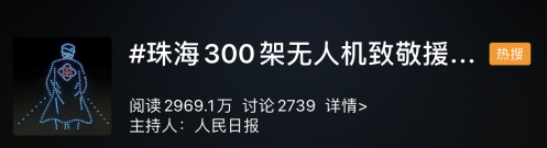 4月18日晚,深圳大漠大智控技术有限公司与珠海星乐度精心策划“爱在星乐度·2020再出发”为主题的无人机编队表演活动无人机编队飞行了约10分钟,展示了"逆行者""摘口罩""护士捧心"等9个精心设计的画面,并有微博、看点进行现场直播。