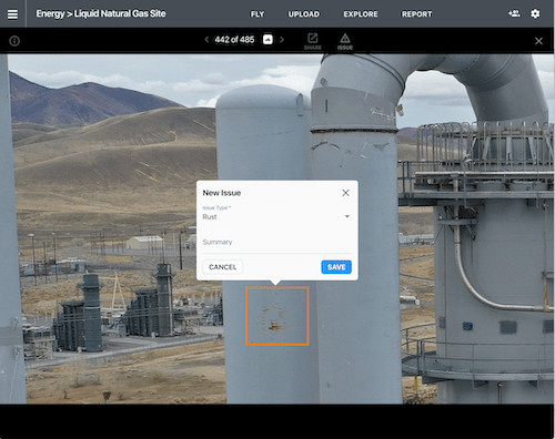 2D检查工作流程特别适合于塔楼,资产或立面检查。它使用户可以滚动浏览感兴趣区域中的一系列照片,选择合适的照片,然后使用问题标签,摘要和提及与其他团队成员进行协作来进行远程检查。