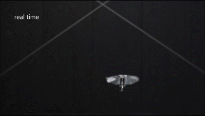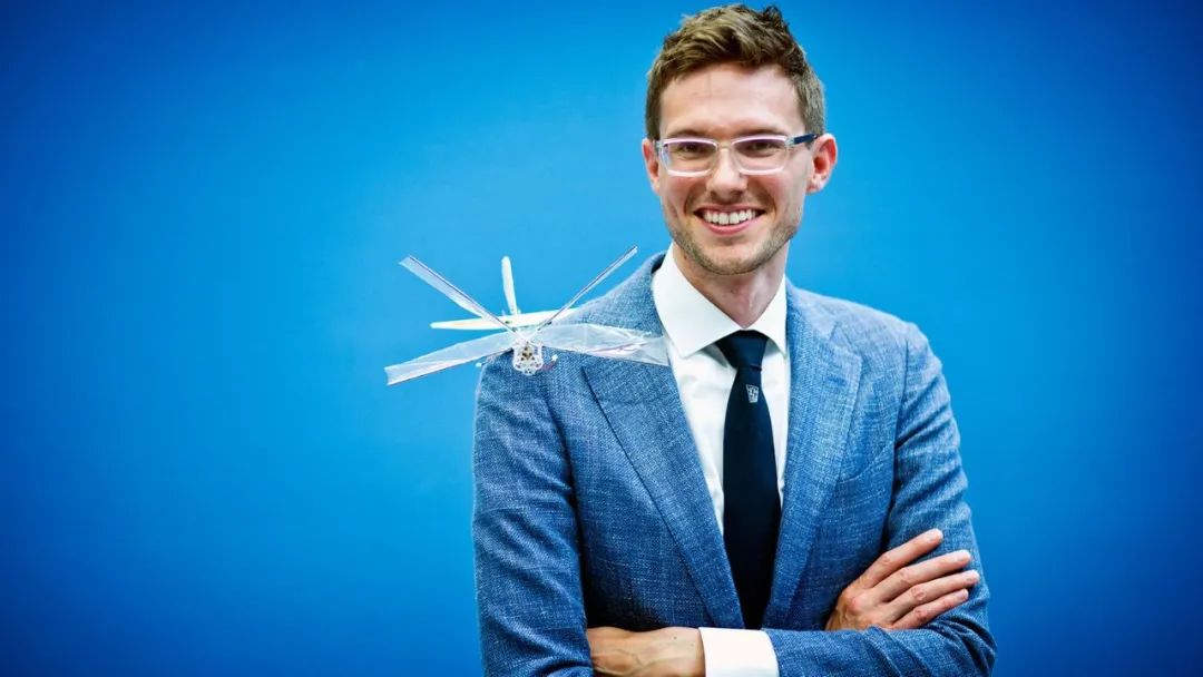 Guido de Croon和Delfly代尔夫特理工大学设计的DelFly无人机,重量不到50g,从果蝇的翅膀运动中获得灵感。DelFly的四只翅膀由一块超轻的透明薄膜组成,由一个轻巧的电机驱动,可以让它连续飞行六到九分钟。虽然这个透明的翅膀看起来很轻薄,但这组翅膀可以直接接触到物体表面,甚至可以撞在障碍物上,DelFly会像昆虫撞到窗户之后那样自行恢复。对于大多数现有的螺旋桨的无人机来说,这样的接触是致命性的。就好似于智能手机的摄像头将视觉反馈给AI软件,德克罗恩先生正在开发模仿昆虫的避障感官的算法。DelFly团队目标是在室内实现自主飞行,可用于大型温室内监测农作物等方面。德克罗恩先生说,在未来生物机械师可以为不同的任务量身定做一架无人机。每个任务都有合适的无人机去执行。