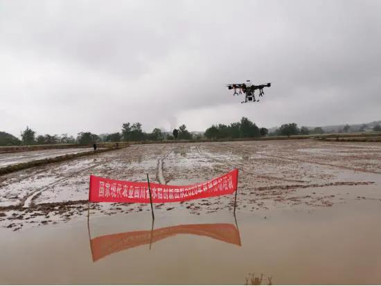 4月22日,内江市农业技术推广服务中心的技术骨干、内江市农科院水稻专家等一起观看了无人机直播、植保过程,一致认为无重播、无漏喷,种子分布均匀,播种效果良好。