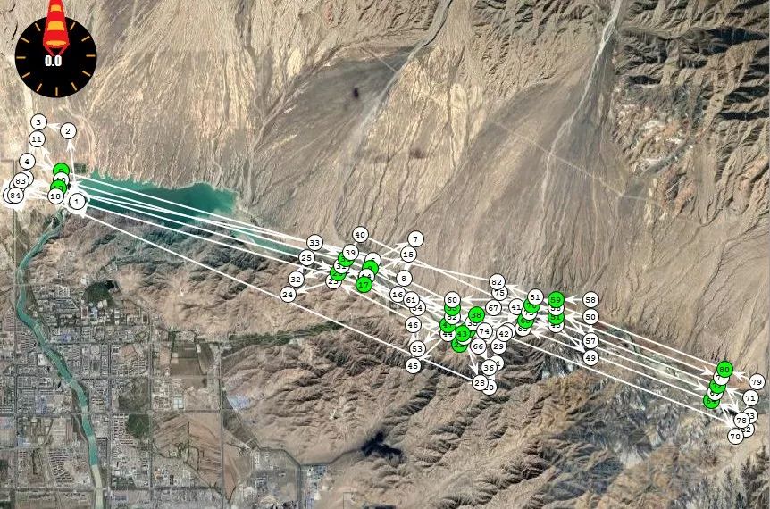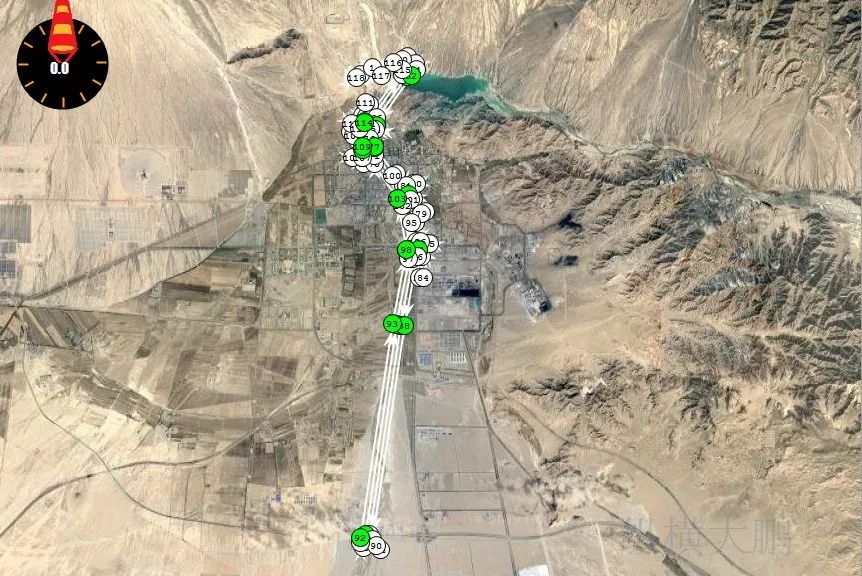 本次任务航测全长165公里,使用CW-15大鹏搭载五拼半画幅倾斜相机,飞机航线高度为3800米,比例尺1:1000,航向重叠率75%,旁向重叠率70%。