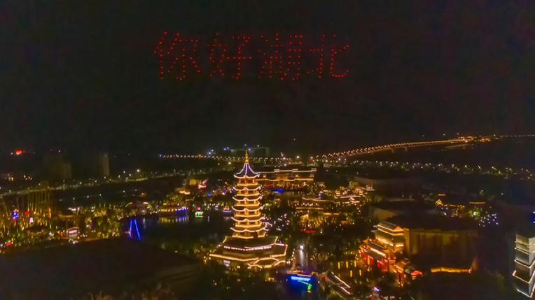 此次荆州方特的“无人机光影秀”动用了300余架无人机,“五一”假期每晚8点升空表演。在时长约13分钟的表演中,无人机群环绕荆州方特标志性建筑“神州塔”飞行,在空中不断变换造型和灯光色彩,组成“屈原”、“凤凰”、“虎座鸟架鼓”、“楚王宫方特门头”、“祥云”等极具荆楚特色的图案,并显示“你好湖北”、“荆州方特”和“致敬劳动者”等字样,与荆州方特园区美轮美奂的灯光造景相映成辉。